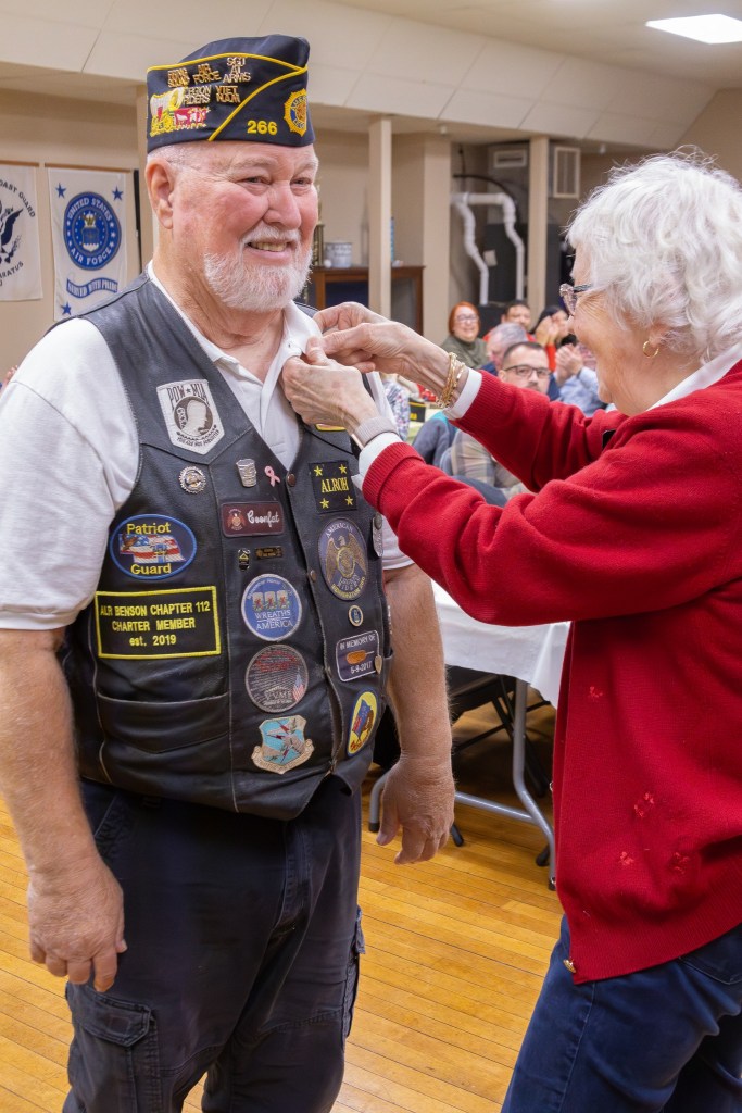 Les and Jim also received pins and certificates honoring their service during the Vietnam era. In addition, Auxiliary President Annette Kay recognized several auxiliary members with milestone pins, celebrating their years of dedicated service and support for veterans.