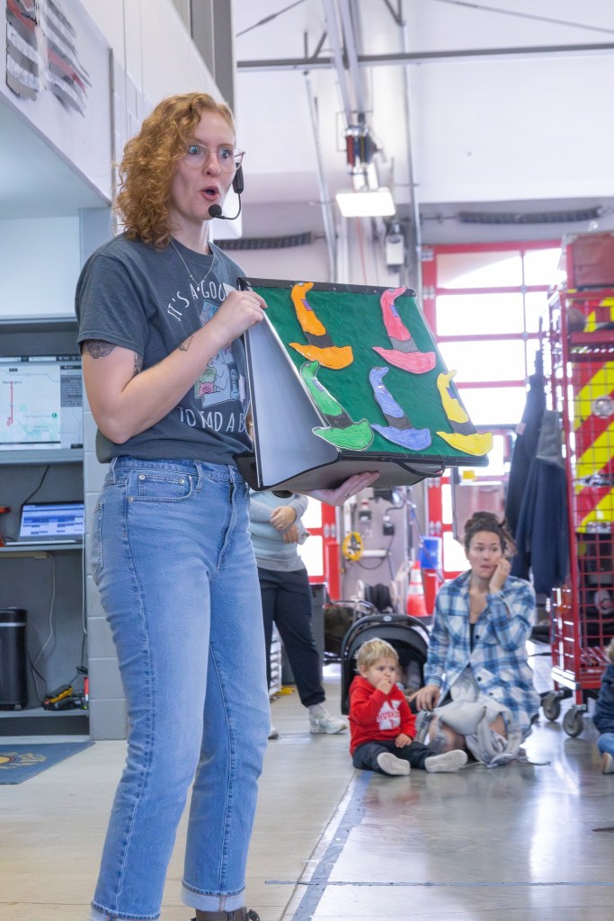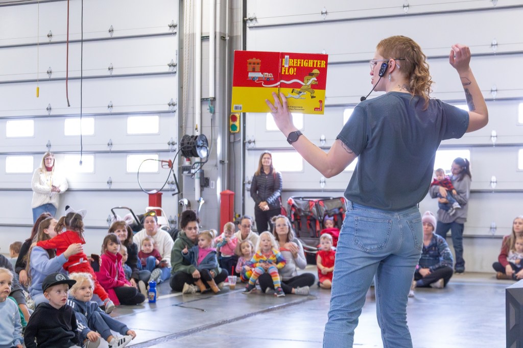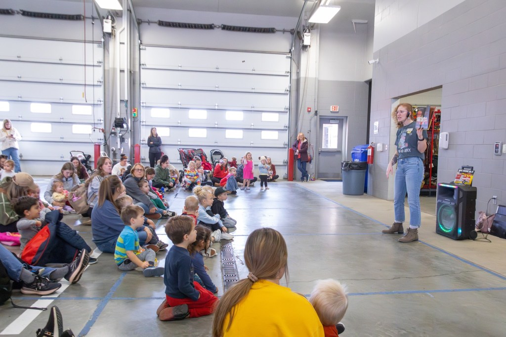 The station was filled with warm hearts and excitement as Librarian Johnna Bierman kicked things off with songs and dances, followed by Firefighter Riley Snoderly reading the high-energy favorite Fire Engine No. 9 by Mike Austin. After more rounds of songs including “Hurry Hurry Drive the Firetruck” (complete with all the kids climbing imaginary ladders and spraying hoses), Bierman wrapped up the stories with Firefighter Flo! by Andrea G. Zimmerman. The grand finale? Families explored the fire trucks, climbed aboard, asked the crew a million questions and snapped tons of photos with our local heroes.