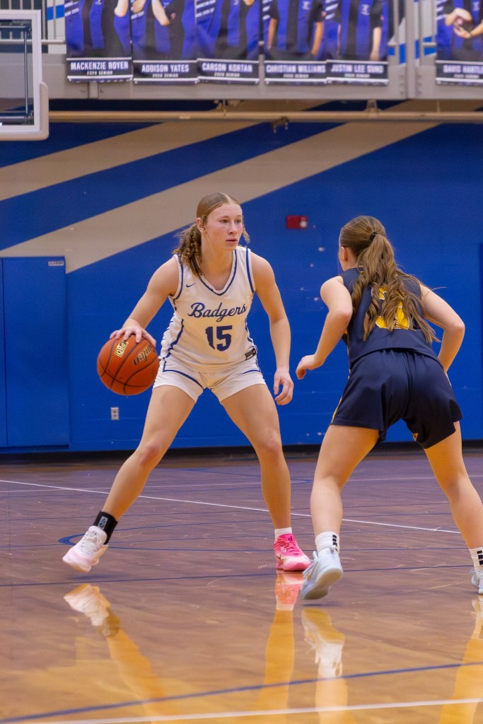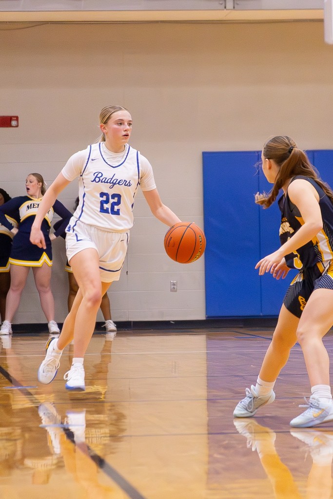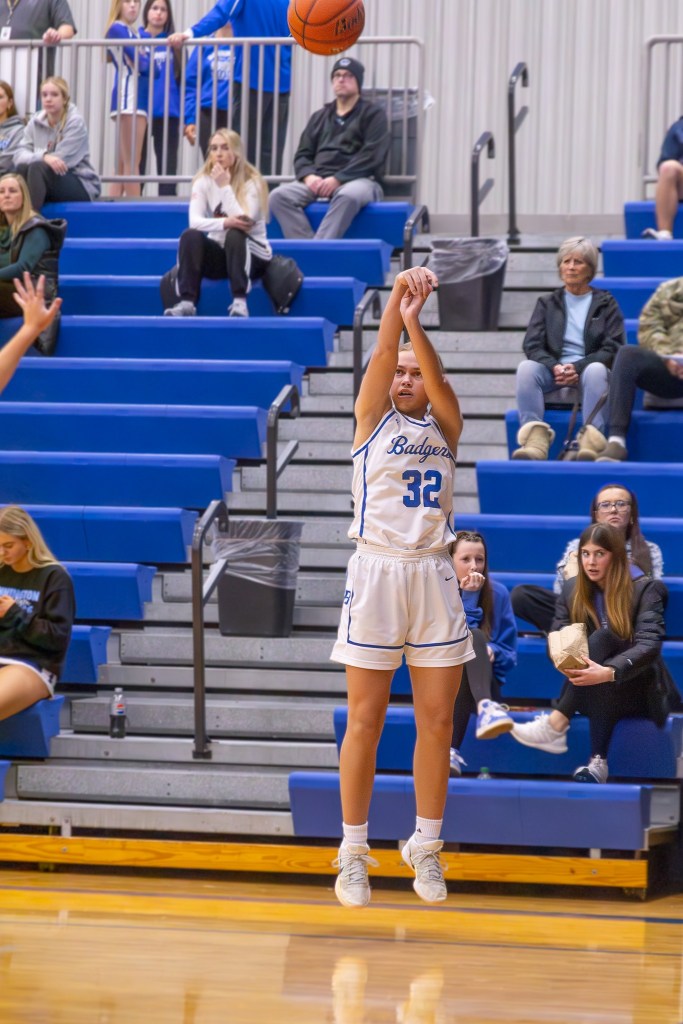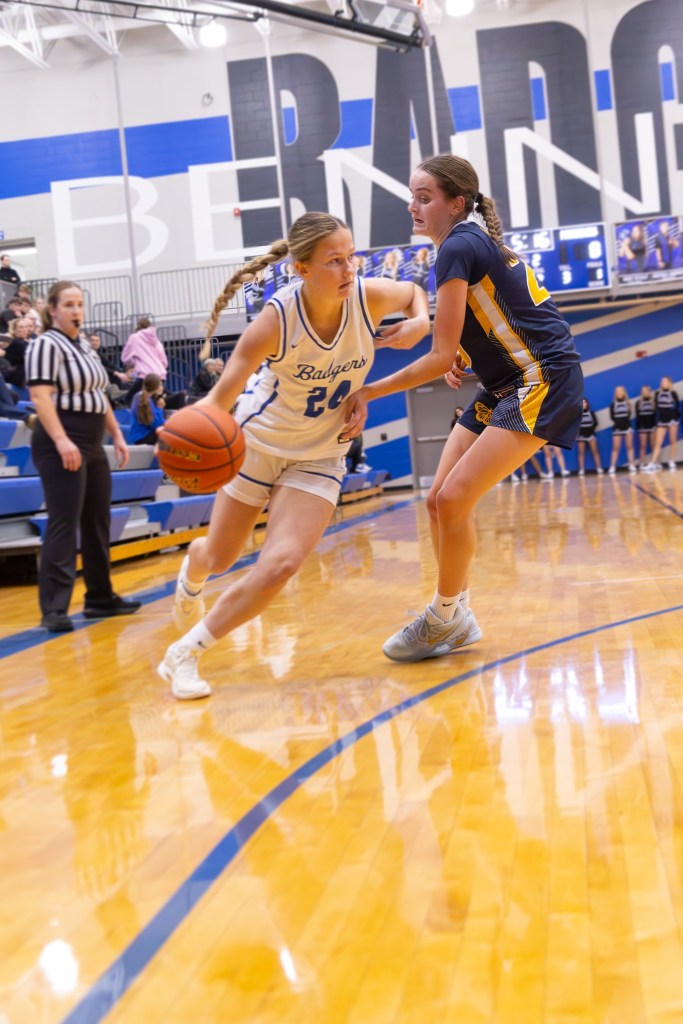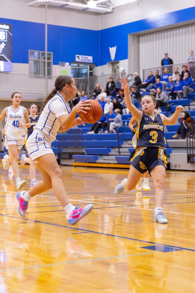 The Bennington Badgers have kicked off the 2025-26 girls’ basketball season with three wins- the most recent was Tuesday night’s 80-31 victory over Omaha Mercy! The team dominated from tip-off, while also sinking all five free throws. With 23 assists on 33 made baskets, the ball movement was crisp and purposeful, showcasing the teamwork they’ve been building in practice.