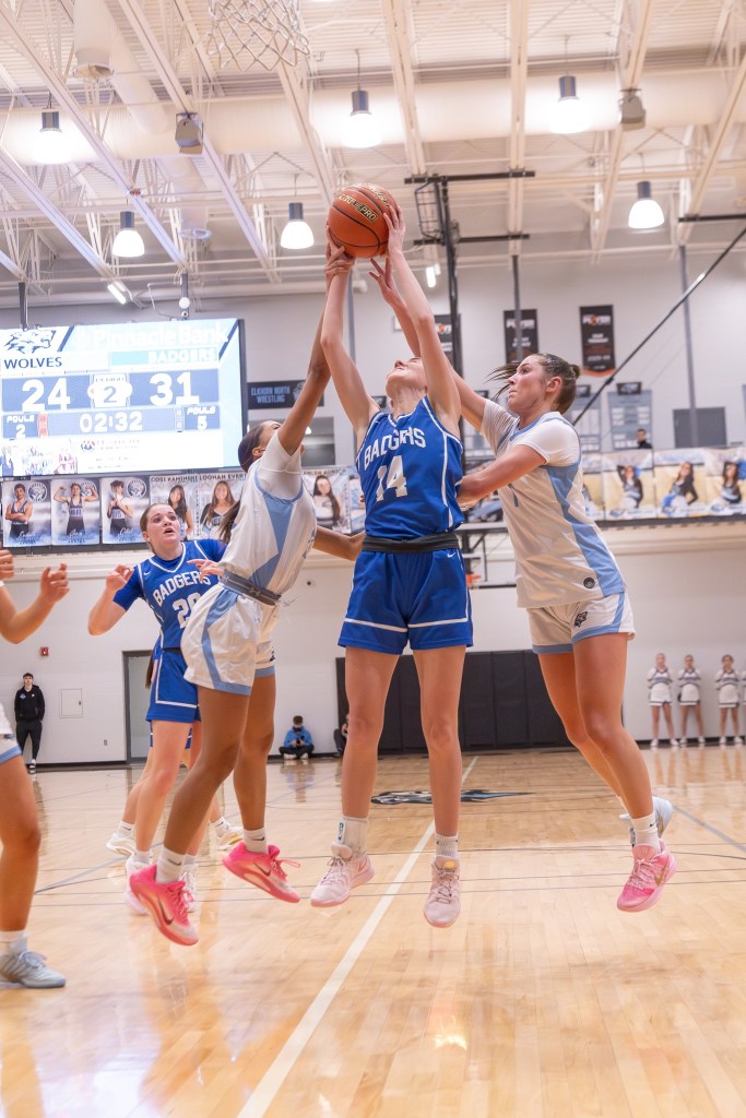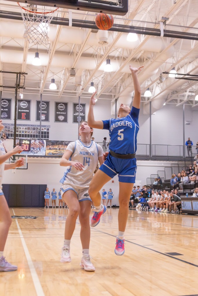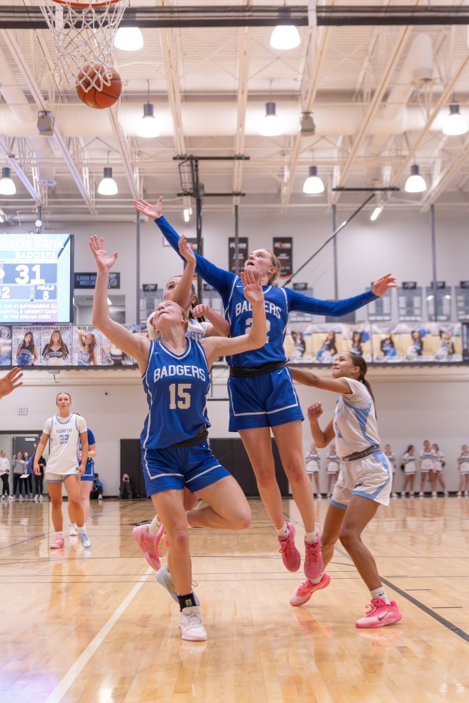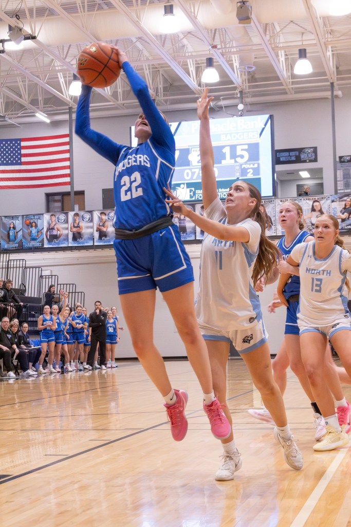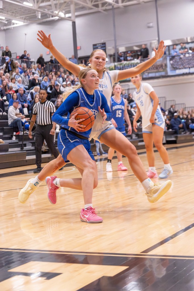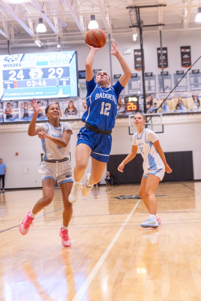 The Bennington Badgers basketball teams hit the road for a conference doubleheader against Elkhorn North on December 12, with the girls kicking things off in impressive fashion before the boys put up a hard-fought battle. The girls team remained perfect at 4-0 with a commanding 68-47 victory, pulling away in the third quarter by outscoring the Wolves 19-5 in that quarter alone. Junior Harper Bohaboj led the way with 16 points, 7 rebounds, 6 assists, and 5 steals, while Skylar Johnson (15 points), Haydin Jackson (14 points), and sophomore Macie Reiner (11 points, 9 rebounds) all delivered in a balanced attack that featured strong defense and efficient shooting.