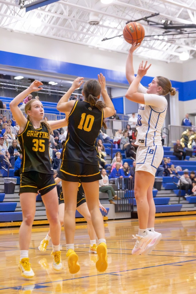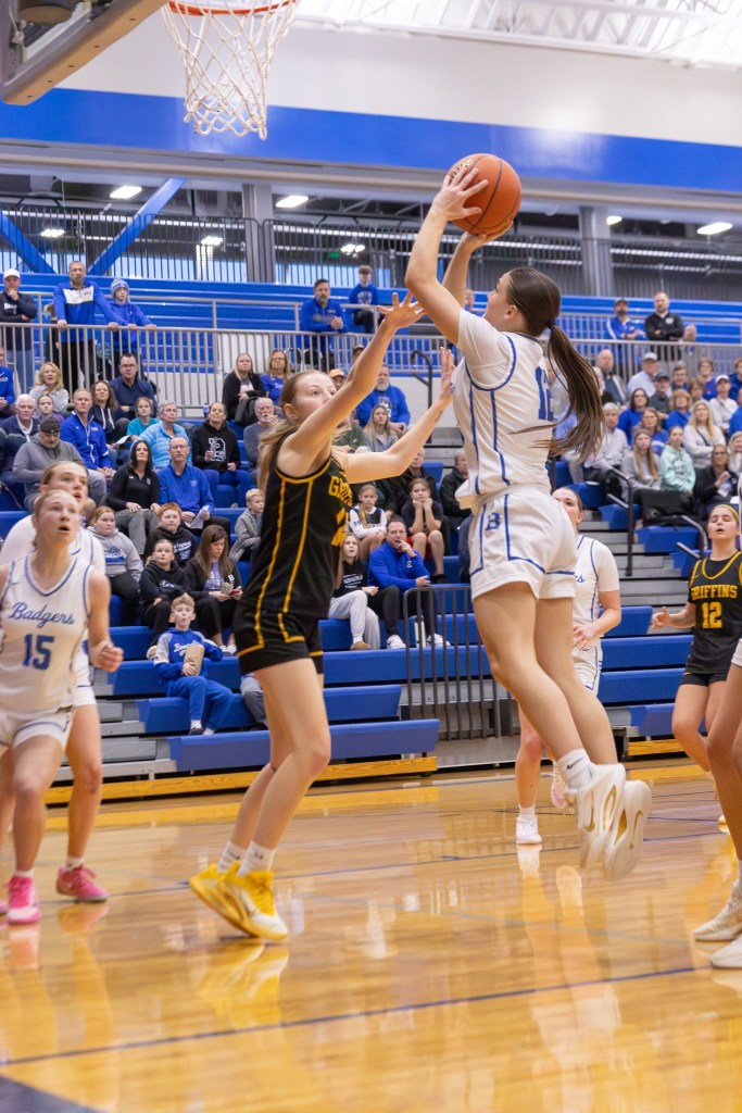 The nightcap boys’ game proved thrilling, with Bennington rallying in the fourth quarter for an 84-79 win. Gretna East kept it close throughout, but the Badgers’ hot shooting (59% from the field and 50% from three) proved decisive in the final frame, where they outscored the Griffins. Boys head coach Luke Olson highlighted his team’s resilience and execution. “We shot it well,” Olson noted. “I thought we shared the ball well, and I thought we did a really good job of just moving on from mistakes. We made a lot of mistakes, but they moved on better than they have in the past and they made better plays after them.” On the momentum, he added, “They’re a tough matchup. They do so many things well… You win a game like this, you hope you can carry it over.”