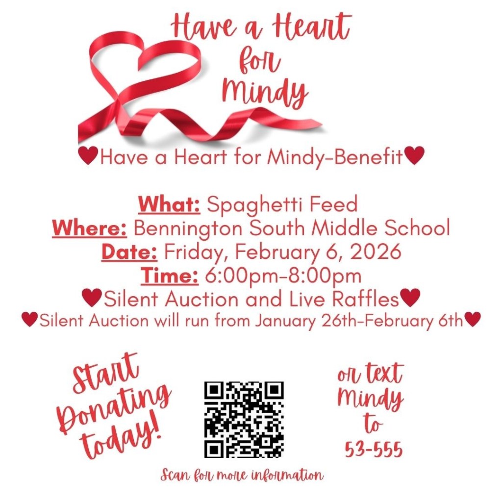 The Spaghetti Feed and Benefit is scheduled for Friday, February 6, from 6-8 p.m. at Bennington South Middle School. Admission is a free-will donation for food tickets (options include pasta, bakes, salad, and pizza). All proceeds support Andrus and her family with medical expenses, including future transplant-related costs like rejection medications and time off work.