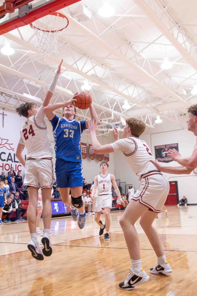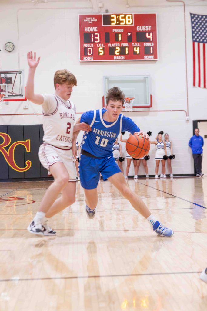 The Bennington High School basketball teams split results in a doubleheader at Roncalli Catholic on Tuesday, February 10, in Omaha. Coming off strong wins against Gretna on Saturday, February 7, the girls’ squad dominated while the boys fell in a tight contest.