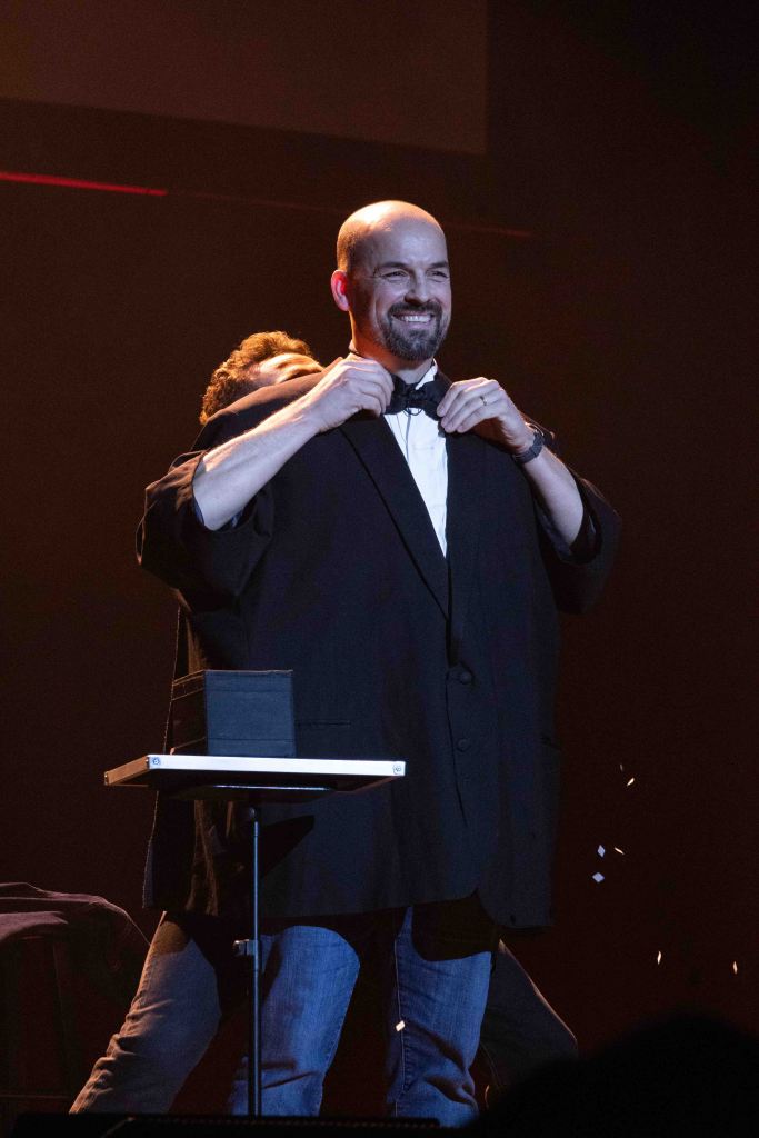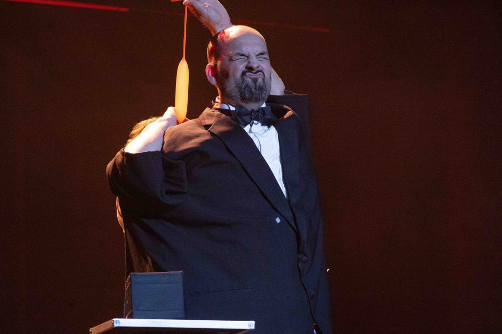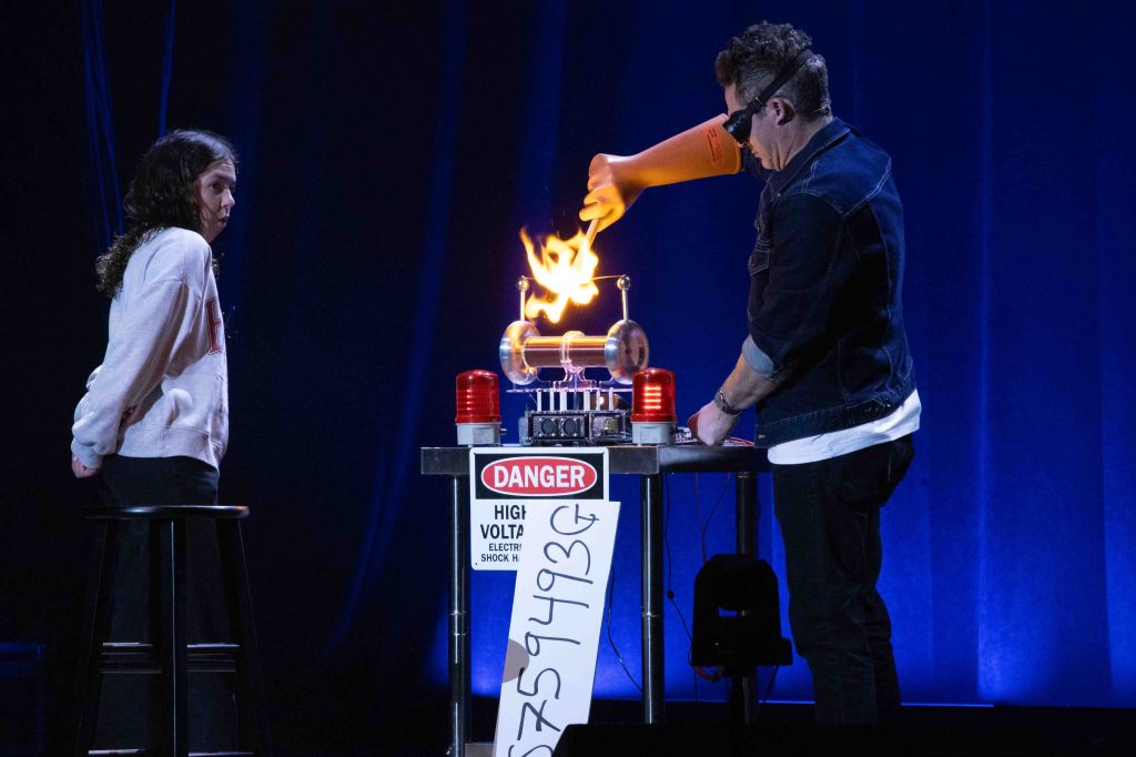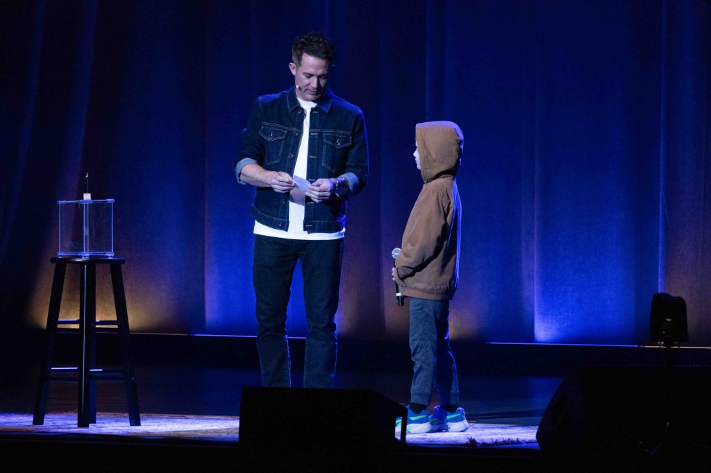 Several kids and adults joined him onstage throughout the evening, each becoming an instant star- we’re looking at you, “Magic Daddy!” Several unscripted, deadpan responses sent the theater into hysterics and inspired callbacks for the rest of the show. The performance from a fan on stage of an impromptu aerial demonstration had Willman himself picking his jaw up from the ground. “Best case scenario, the show takes these little detours,” he explained in our interview. “And then it inspires callbacks later… This can’t happen every night. And that really, truly is the case.”