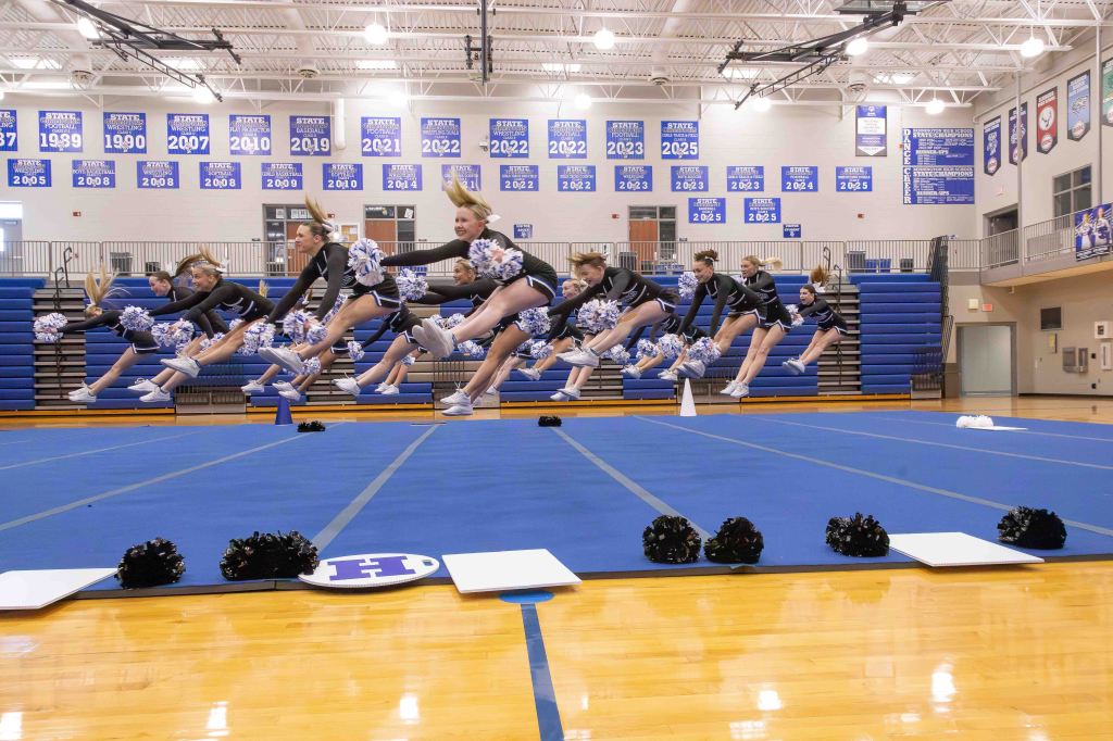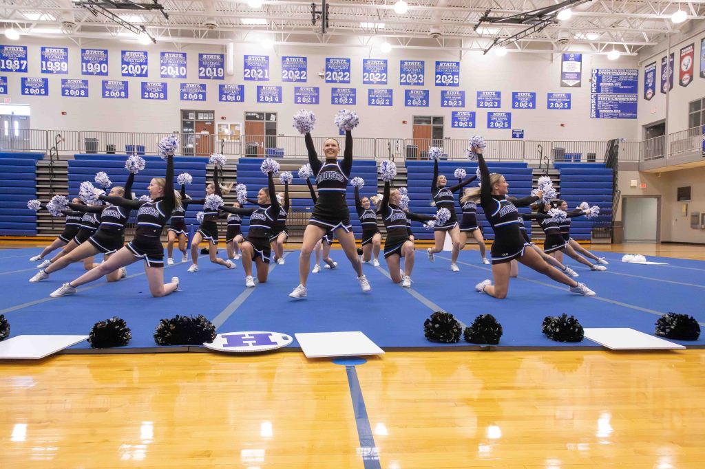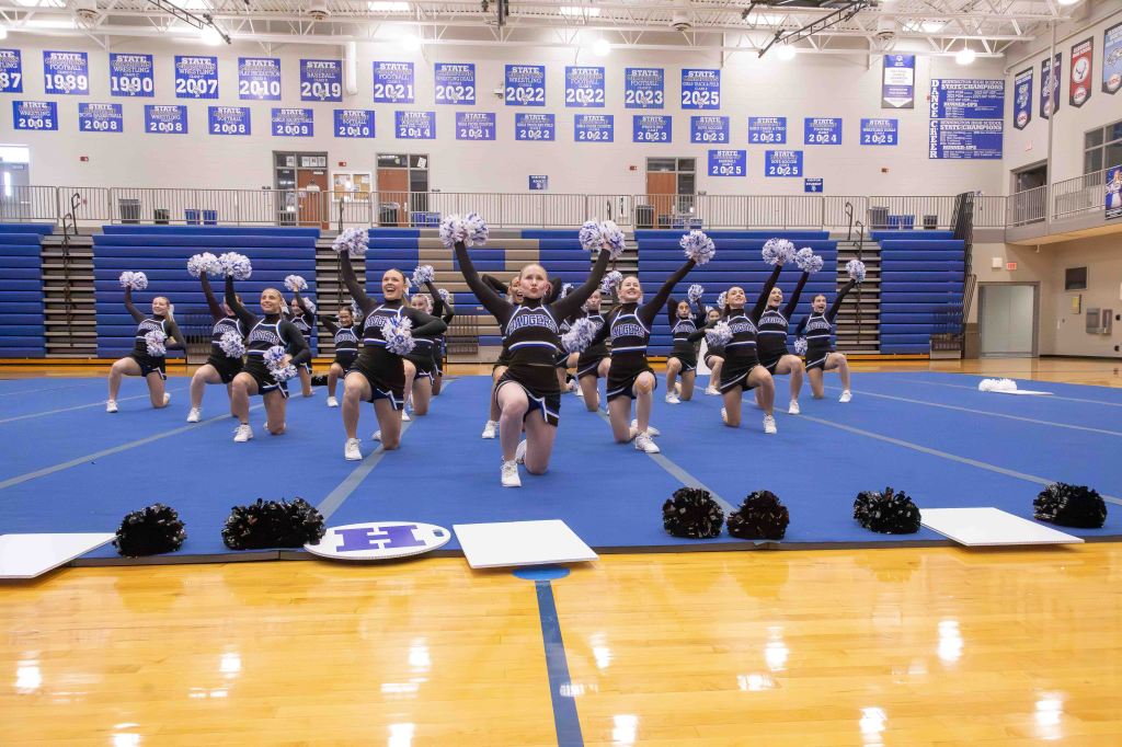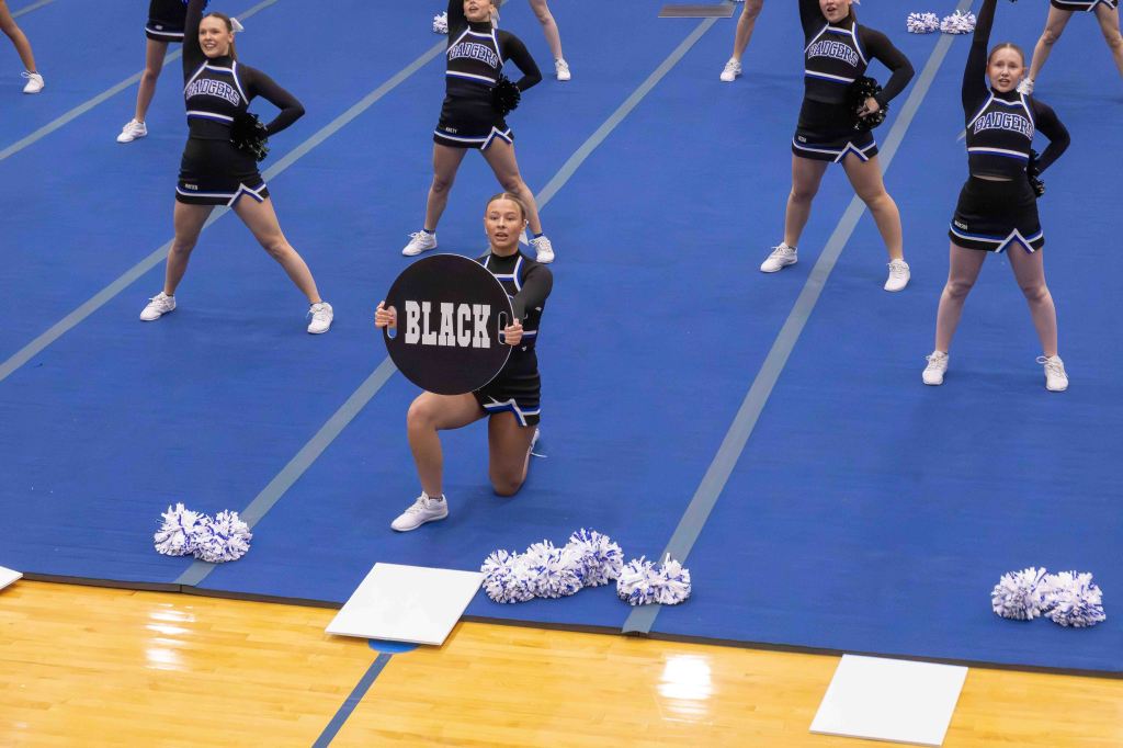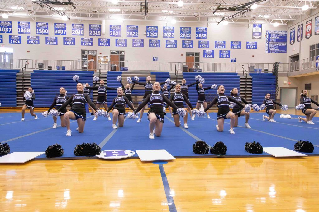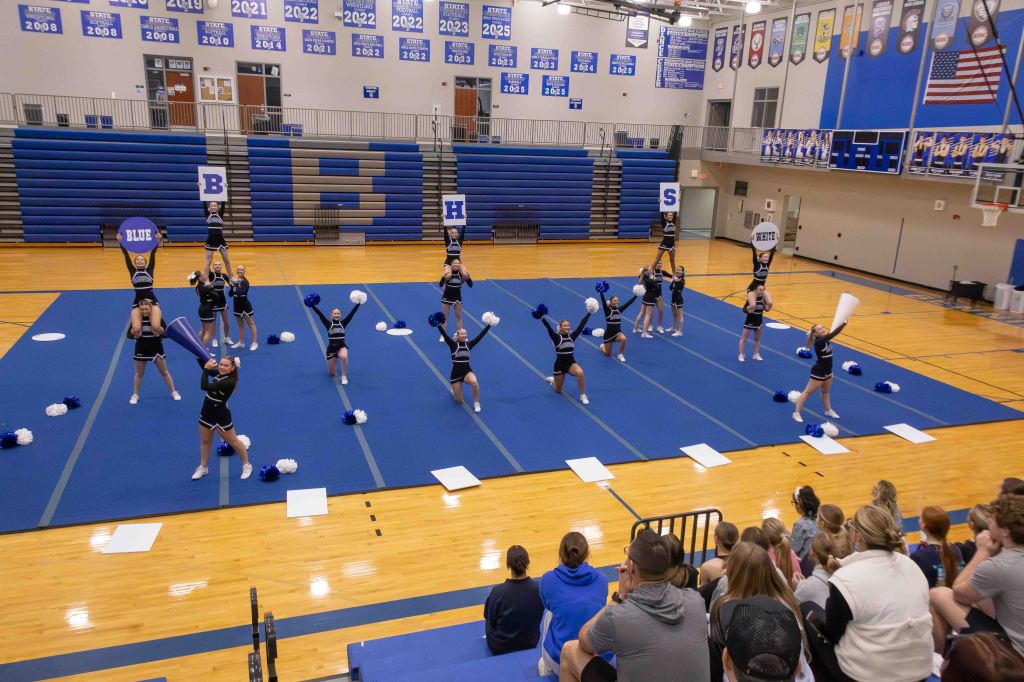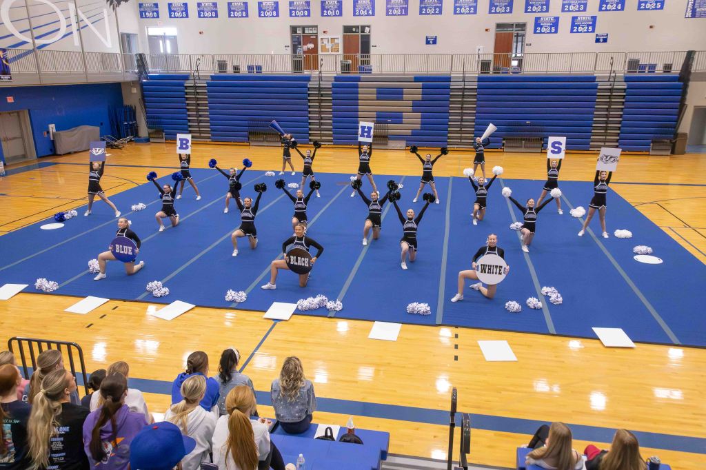 On Saturday, in the lead-up to the competition, the team hosted a special cheer send-off event for community members and families. They performed their full routines, including both their non-building non-tumbling and traditional categories, giving supporters a preview of what they’ll bring to state.