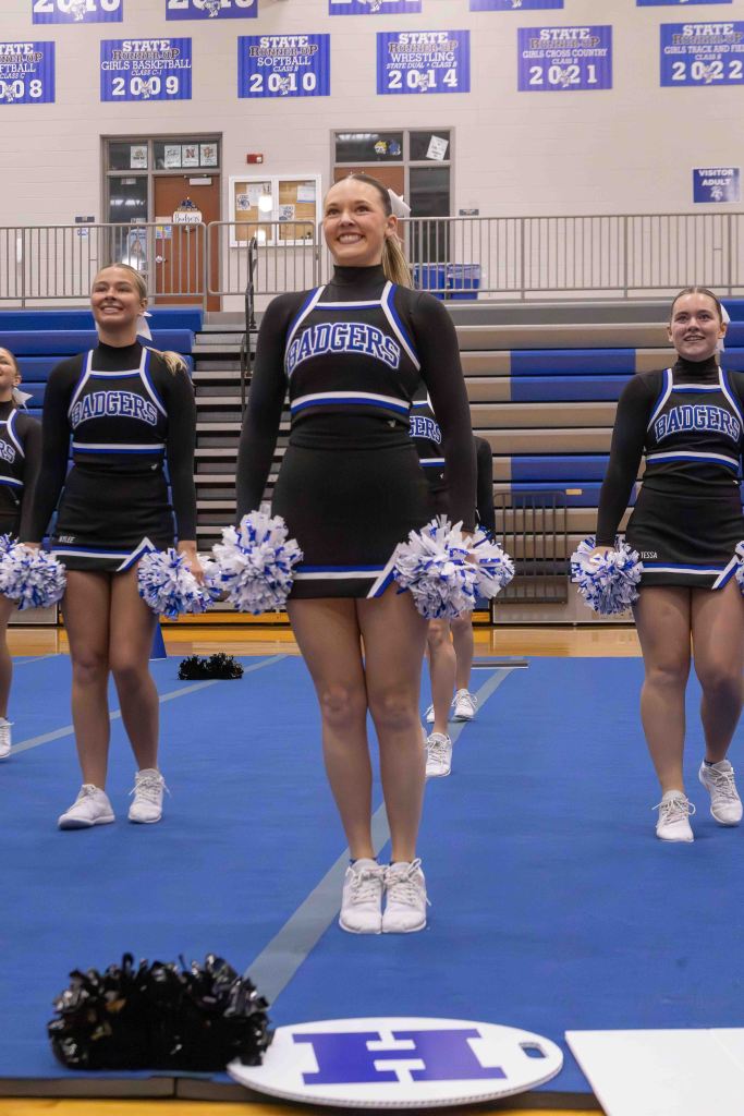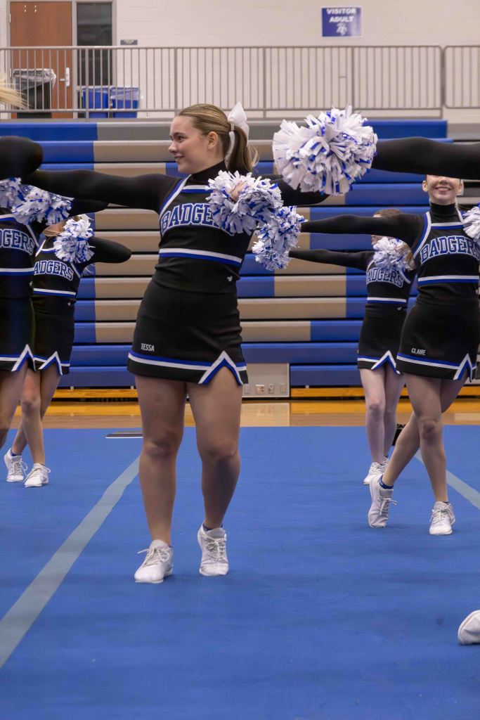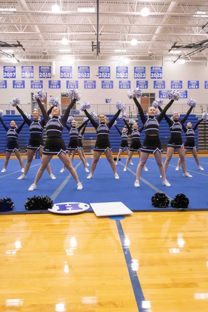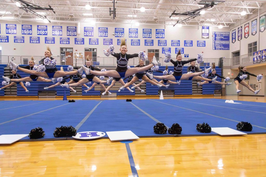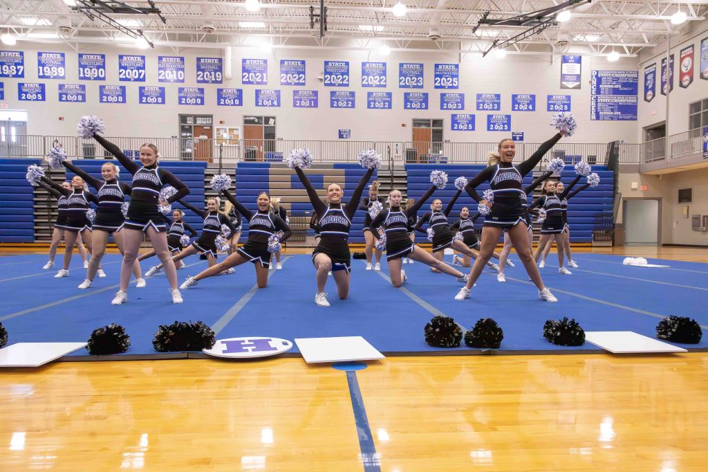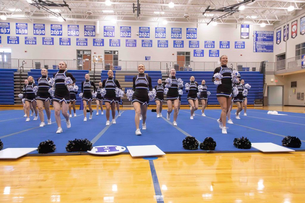On Saturday, in the lead-up to the competition, the team hosted a special cheer send-off event for community members and families. They performed their full routines, including both their non-building non-tumbling and traditional categories, giving supporters a preview of what they’ll bring to state.