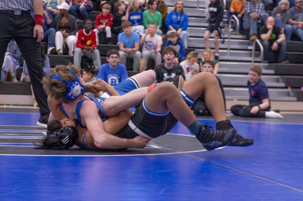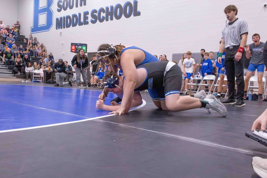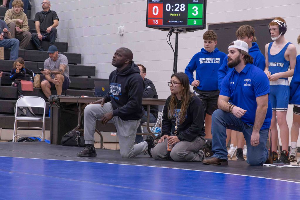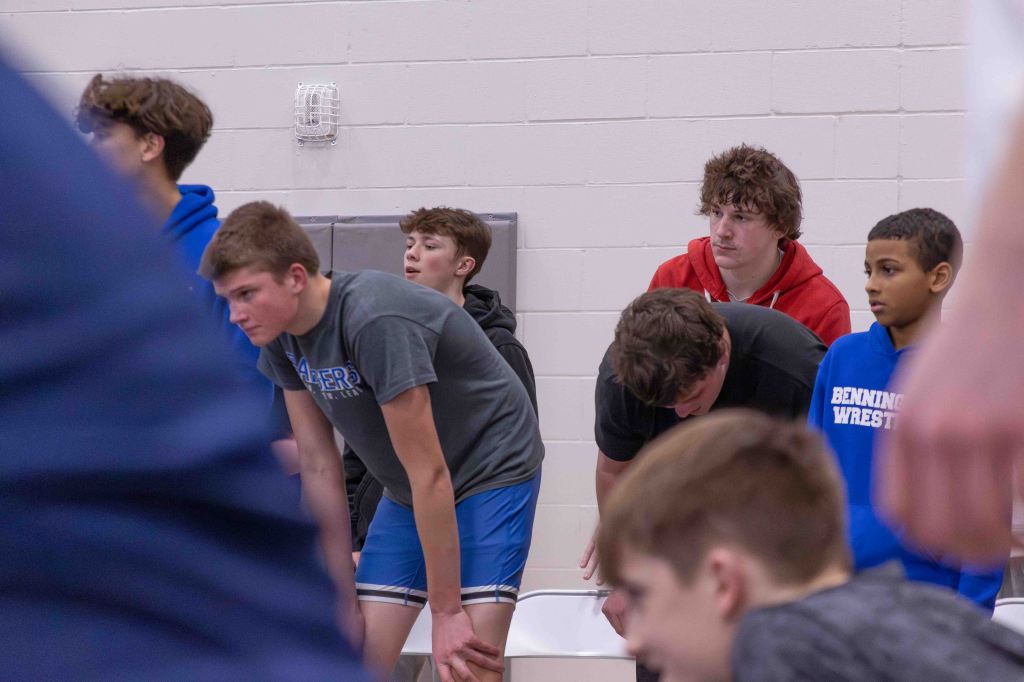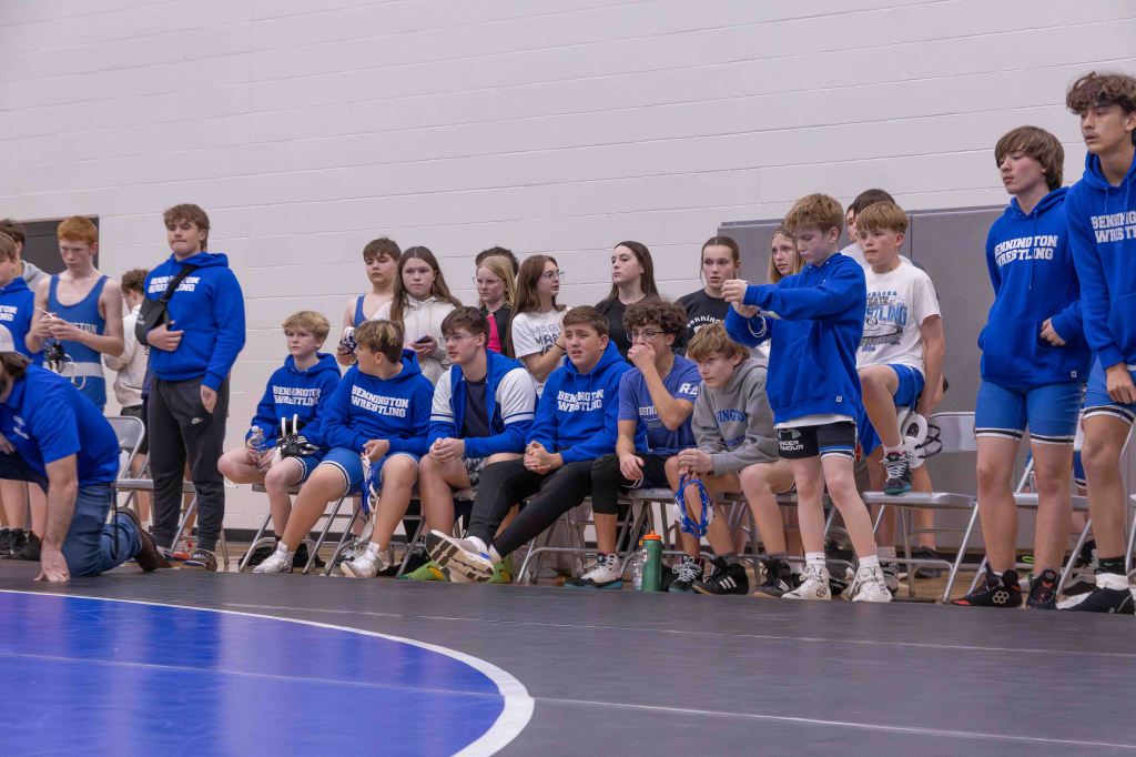 For the middle school coaches, the high schoolers’ involvement carried deep significance. Dalton Stodieck, coach of Bennington Middle School, noted the admiration the younger wrestlers have for their future teammates. “These guys really look up to a lot of these high schoolers and they got to watch state and for a lot of them, they want to join the high school team and they want to wrestle with those guys next year,” Stodieck said. “So it really does mean a lot for those guys to come out here and support them, because that’s going to be part of their team next year, especially for those eighth graders.”