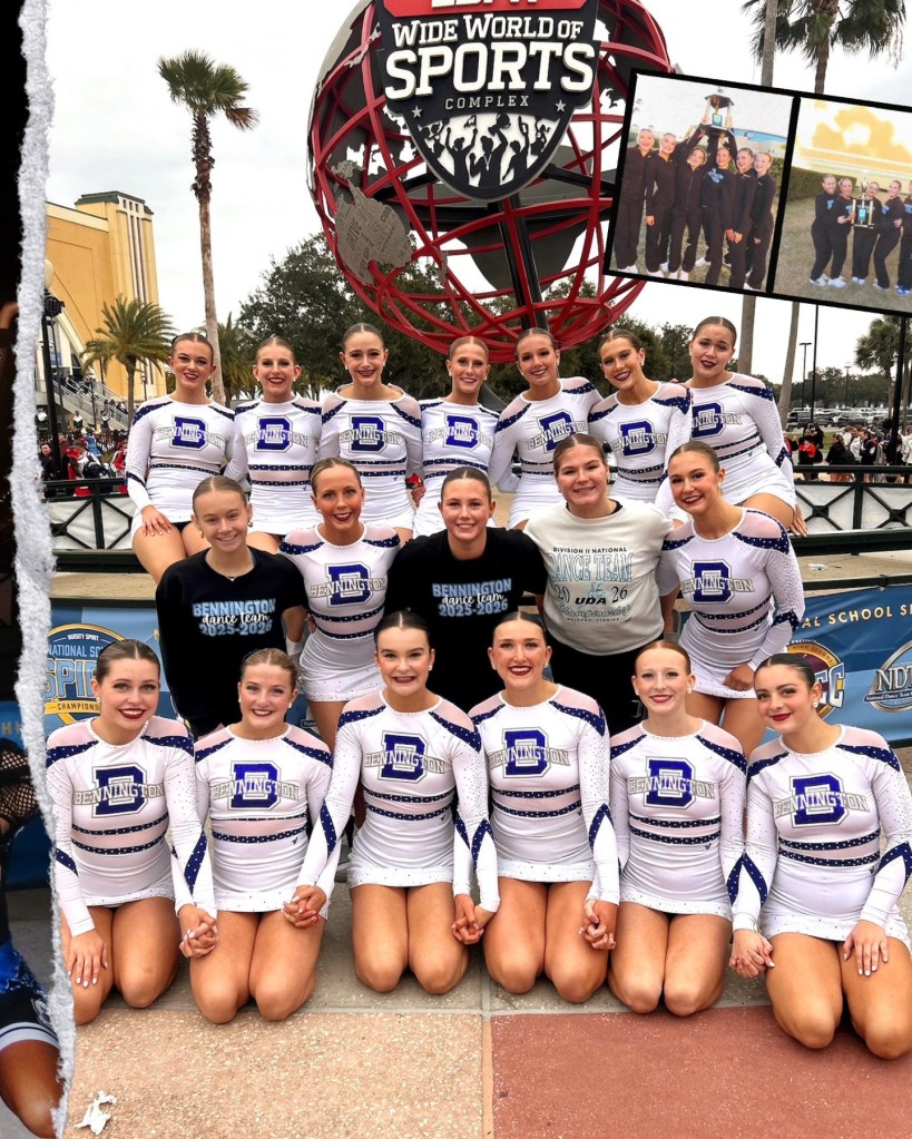 The team also took its talents to the national stage earlier in the season, traveling to ESPN Wide World of Sports Complex at the Walt Disney World Resort in Florida for the 2026 National Dance Team Championship. Competing against teams from across the country, Bennington delivered strong routines and earned sixth place in Medium Varsity Game Day, along with 10th-place finishes in both Large Varsity Pom and Large Varsity Hip Hop.