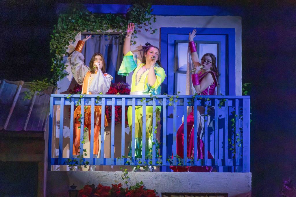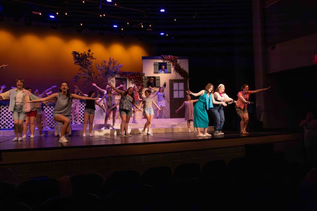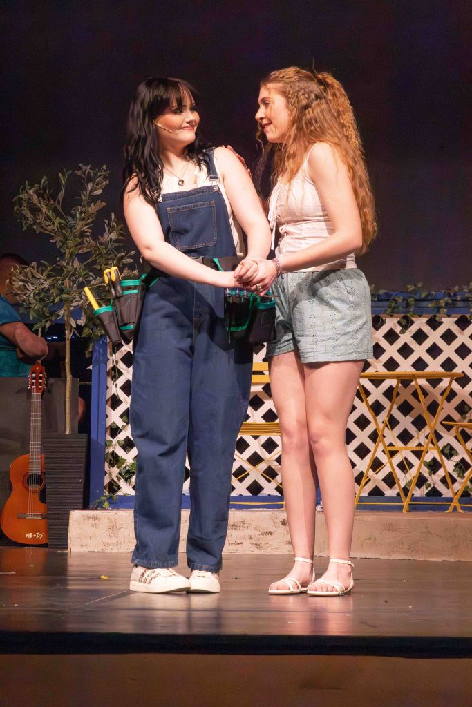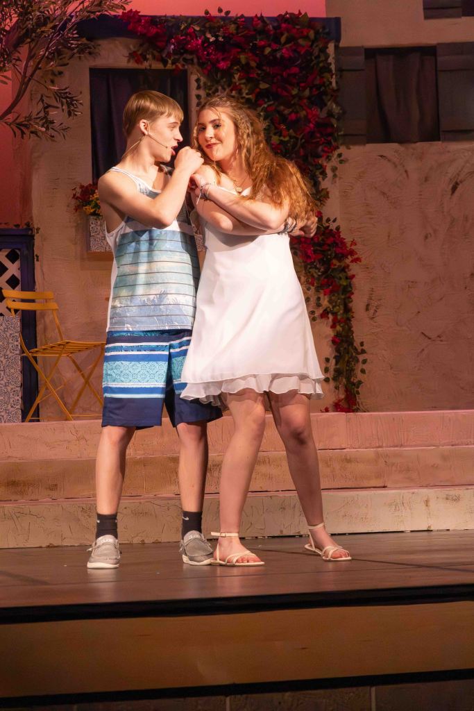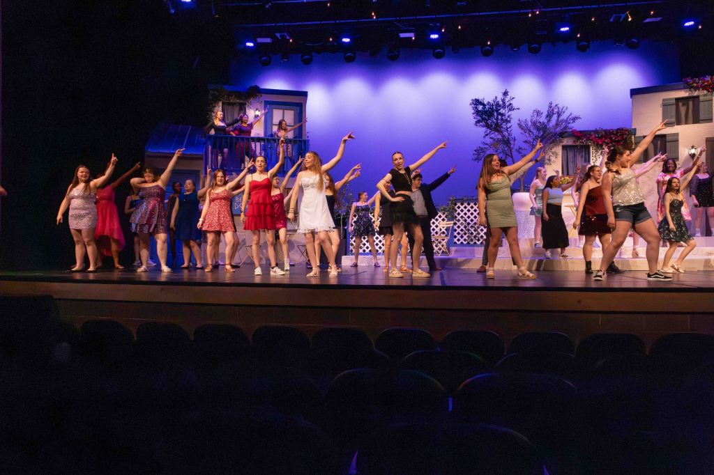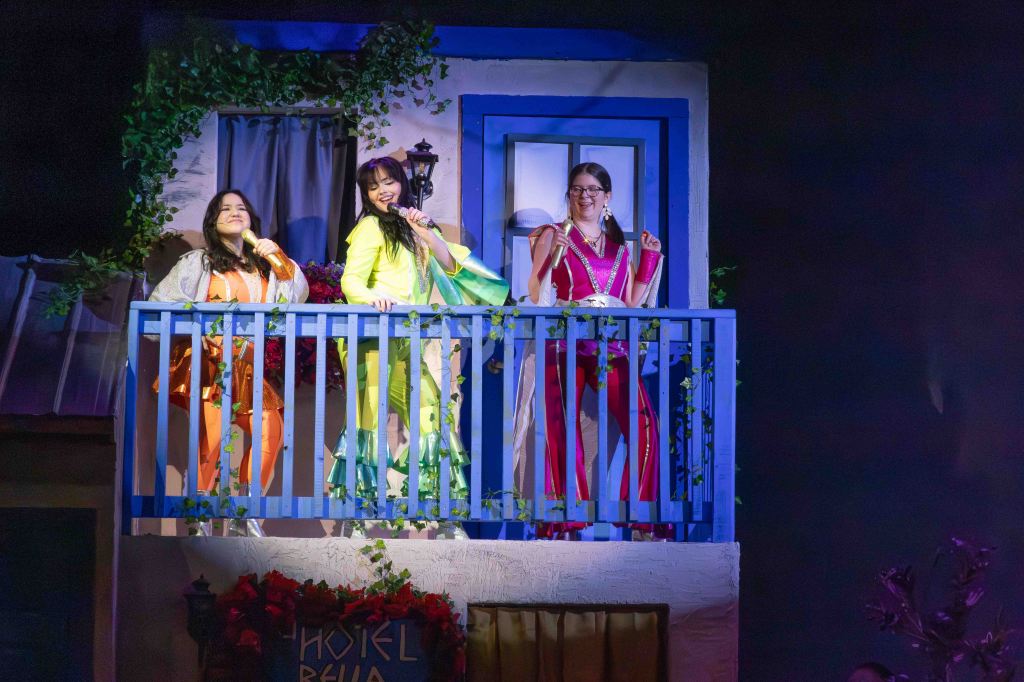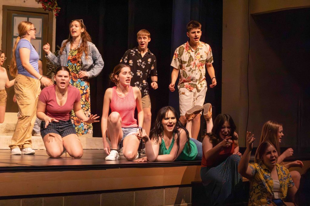 Director Konni in den Bosch said the choice of Mamma Mia! was made in collaboration with vocal music director Tye Hanke and aligned well with the program’s goals. The show offered a single set that students could build themselves, strong roles for female performers, and the ability to involve a large ensemble. “We try to let the kids create characters that are uniquely their own and encourage them as they explore character development,” in den Bosch said.