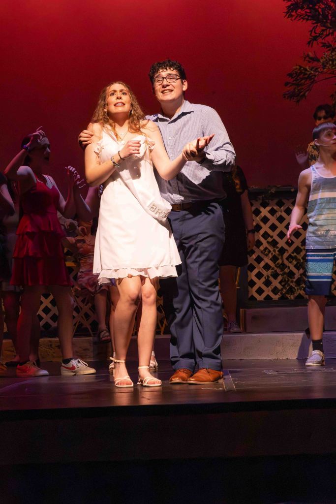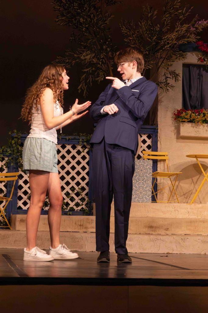 Preston Nocita (pictured below, right), cast as Sky, said he was surprised to land such a prominent role in his first high school production. “Not really,” he said when asked if he had expected to play Sky. “I didn’t imagine I was going to get this kind of role… but I’m very happy and fortunate.”