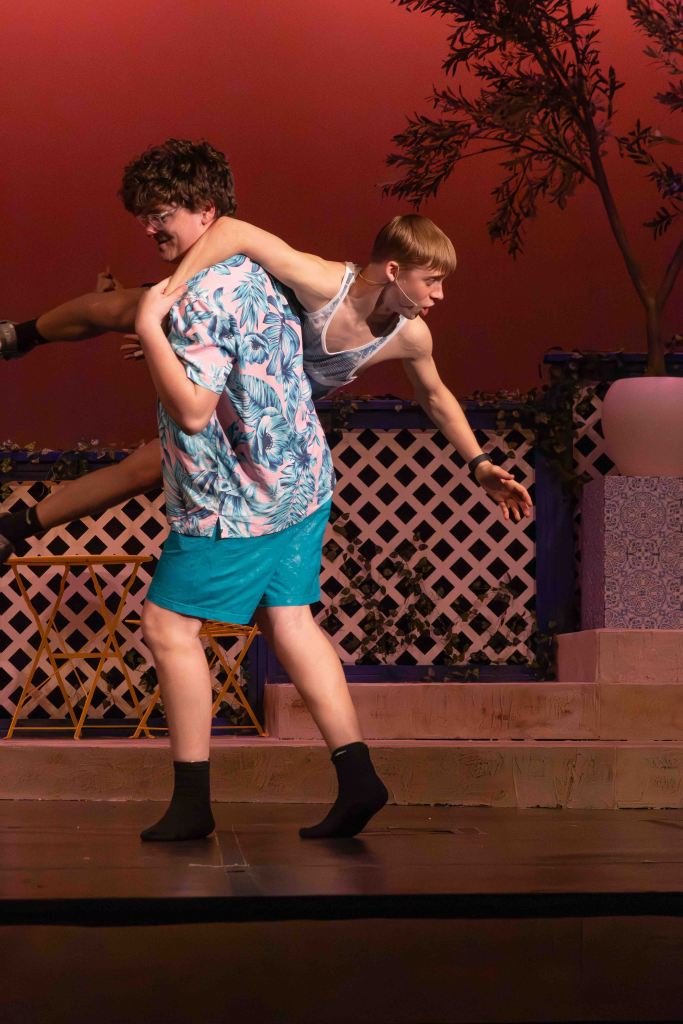 Jay Kruse (pictured below, right), who portrayed Pepper, said he had his heart set on the role as soon as the musical was announced. “As soon as I knew we were doing Mamma Mia!, I knew I wanted to be Pepper,” Kruse said. “I love him with my entire heart.”