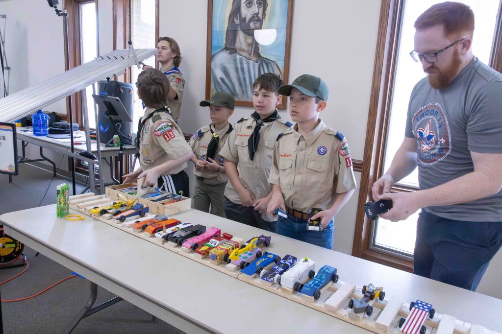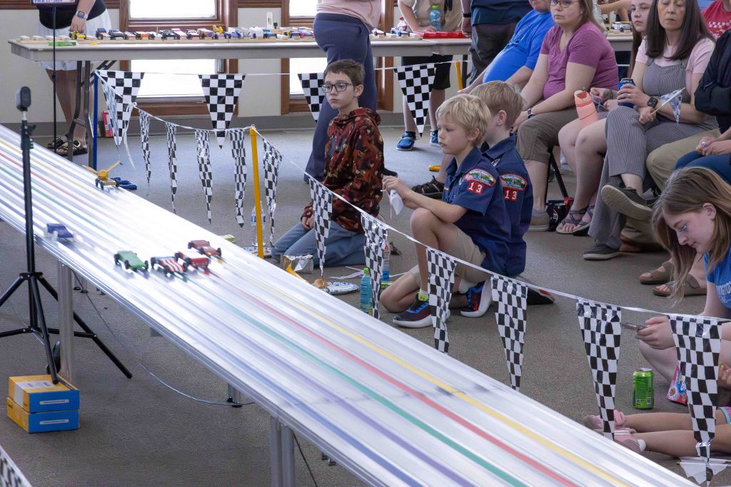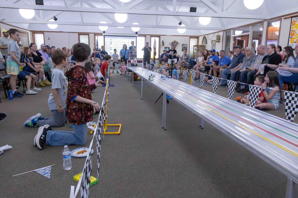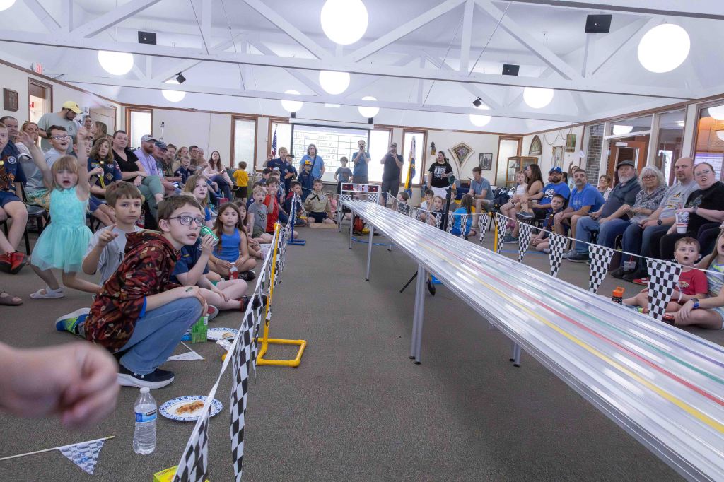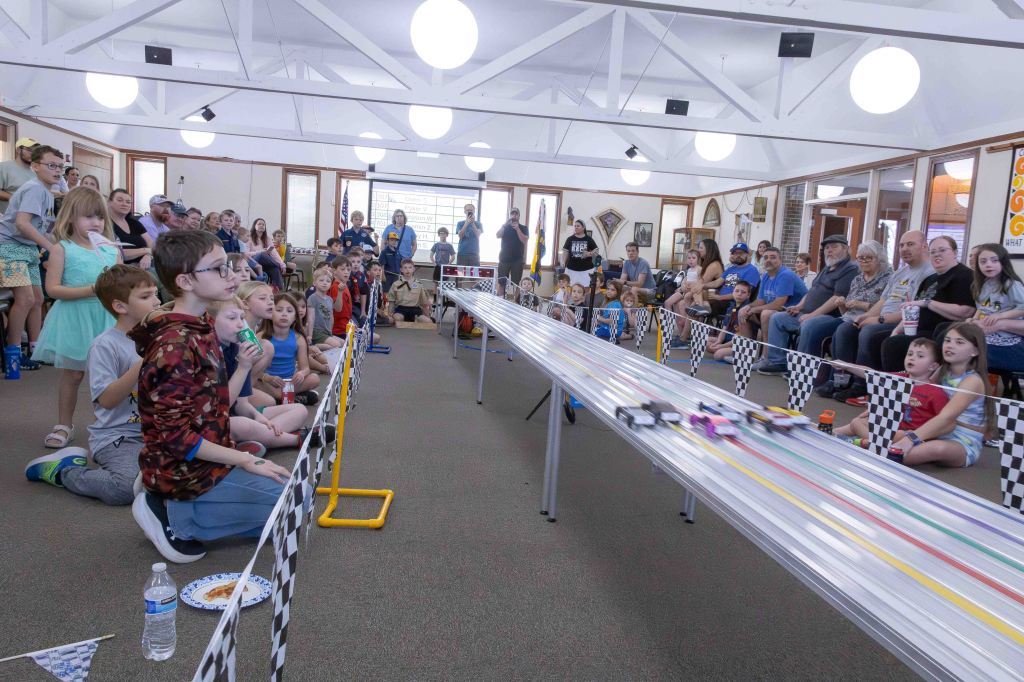 The sound of countdowns, cheers and wheels racing down the track filled the room at St. John’s Lutheran Church last Saturday as local Cub Scout dens gathered for one of the most anticipated events of the year: the annual Pinewood Derby.