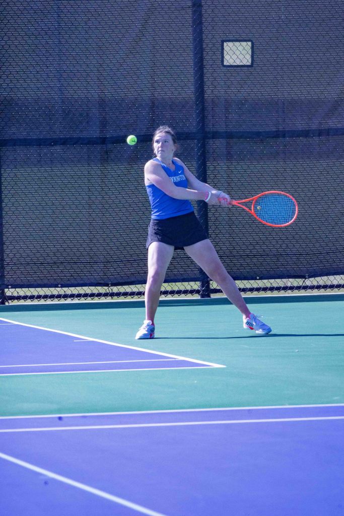 “#1 Singles, Ava Houser and #2 Singles Hilda Shoo battled against some tough singles players and stayed in every point going to deuce many times,” Christensen noted.