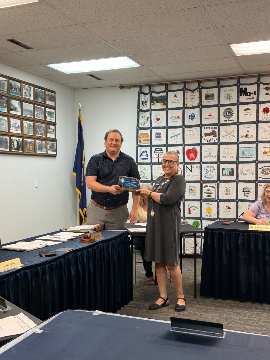 The library report noted the ongoing art contest display (in partnership with the Bennington Women’s Club), upcoming return of state-level entries, and heavy use of the conference room: 291 times by outside groups and over 300 times for library programs last year. Plans for potential expansion into former public works bays are underway.
