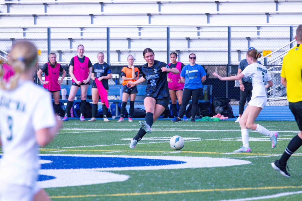 On Saturday, April 18, the Badgers traveled to face Elkhorn North and fell 3-1. Bennington’s lone goal came from a well-executed set piece: Claire Miller delivered a free kick from 30 yards that struck the crossbar, allowing Makenna O’Connor to head the rebound past the goalkeeper.