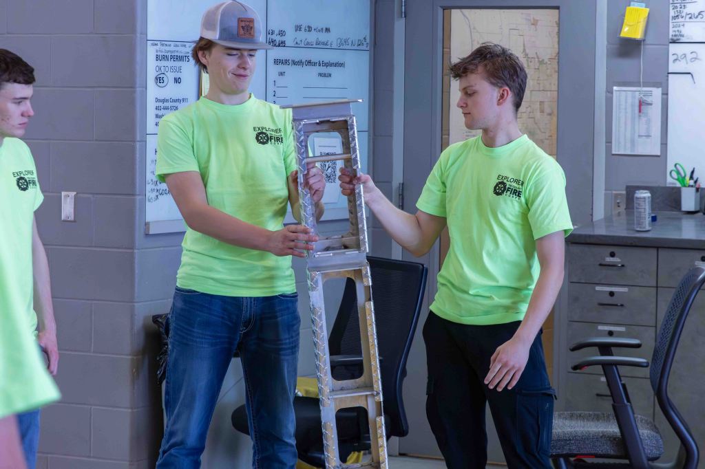 “These are tri-county cadets,” said Firefighter Wyatt Rupp. “That consists of Douglas, Washington and Sarpy counties. They’re all around the high school age and it gives them a good step into the career and volunteer firefighting. They’ll go to different stations around the area to practice different skills,” he added, further explaining the various stations for identifying various tools and learning several ladder skills.