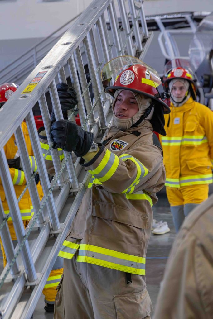Throughout the morning, cadets practiced lifting and carrying ladders (both in pairs and individually), climbing safely and learning how to properly position ladders for rescue scenarios. The training emphasized both technical skill and situational awareness.