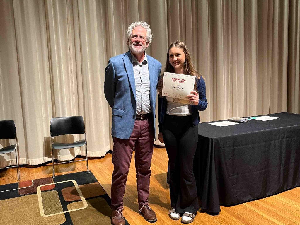 Throughout the day, award recipients were joined by their families and educators, including teachers nominated by the students for their mentorship and support. The celebration concluded with students receiving certificates and a commissioned piece of original artwork created by a student in UNL’s School of Art, Art History & Design.